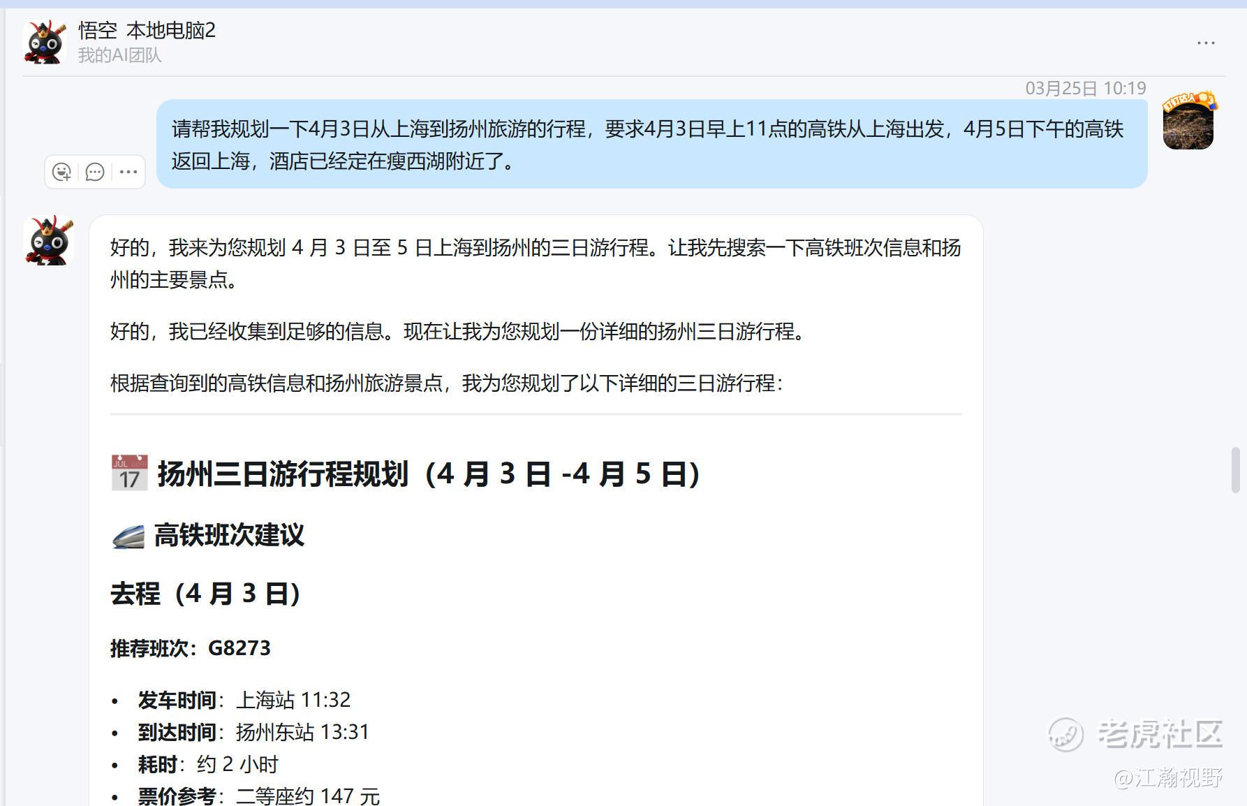 其次,悟空的最佳体验场景,恰恰是作为一款上手极快的小助理,高效解决用户的具体场景化需求。与同类AI产品相比,悟空无需复杂的指令调教,即便对于新手用户,也能快速响应核心需求,这一点在生活服务场景中体现得尤为明显。以清明假期出游规划为例,仅需简单告知出行时间、目的地等基础信息,悟空便能秒级响应,快速生成完整的行程方案,不仅清晰梳理出需预定的火车票、可选择的高性价比酒店,还能精准规划每一站的旅游景区、游览顺序,甚至兼顾交通接驳、景点预约等细节,如同专属小助理般省心高效,这与飞猪AI行程助手的场景化服务逻辑高度契合,也凸显了悟空在场景化需求处理上的优势。