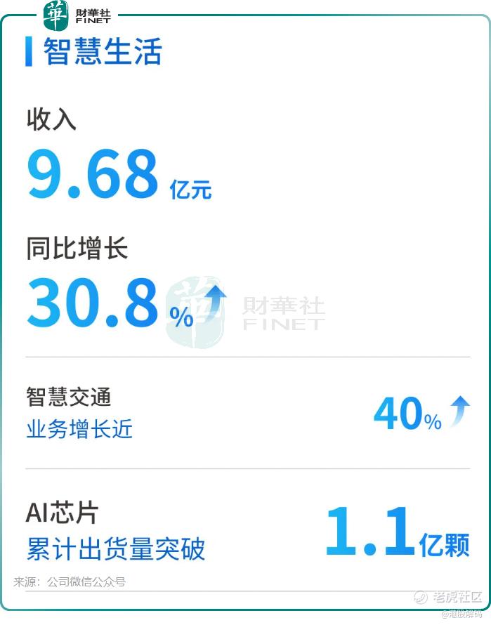 作为公司业绩基本盘的智慧生活业务,2025年实现收入9.68亿元,同比增长30.8%,占总营收的79.9%。其中智慧交通业务收入同比增长近40%,已在青岛、深圳等超10个城市落地;智能座舱业务实现端侧大模型的商业化落地,与多家整车厂商达成合作;自主研发的AI芯片累计出货量突破1.1亿颗。