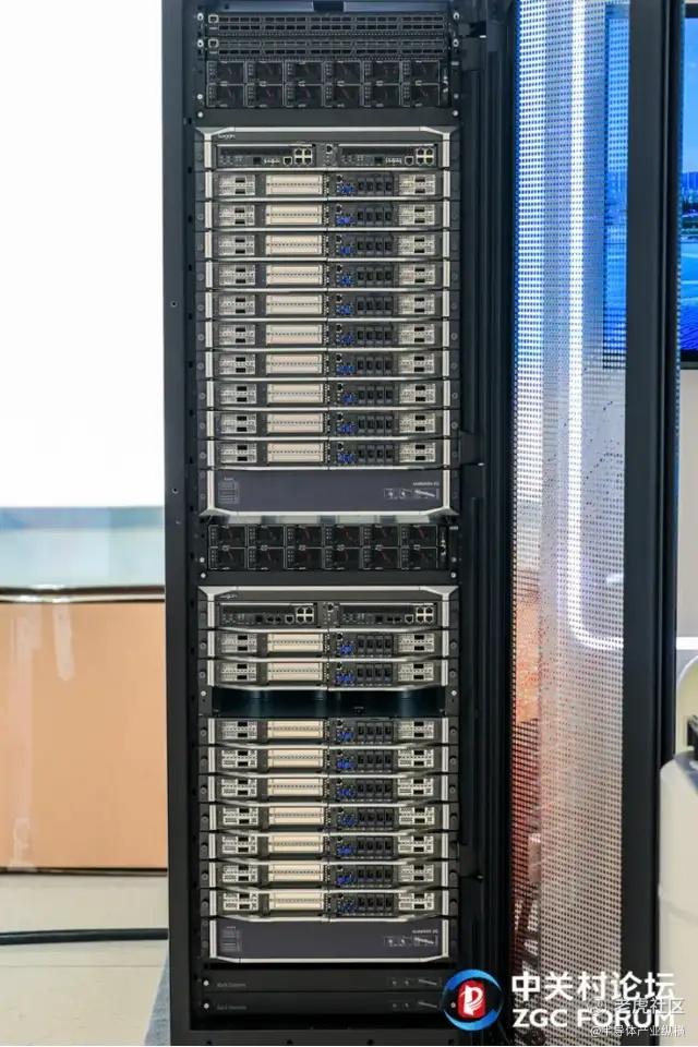 发布会现场,中科曙光展示了世界首个无线缆箱式超节点——scaleX40。