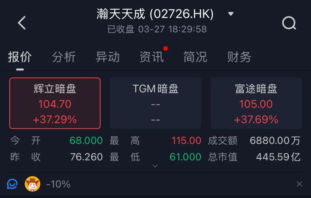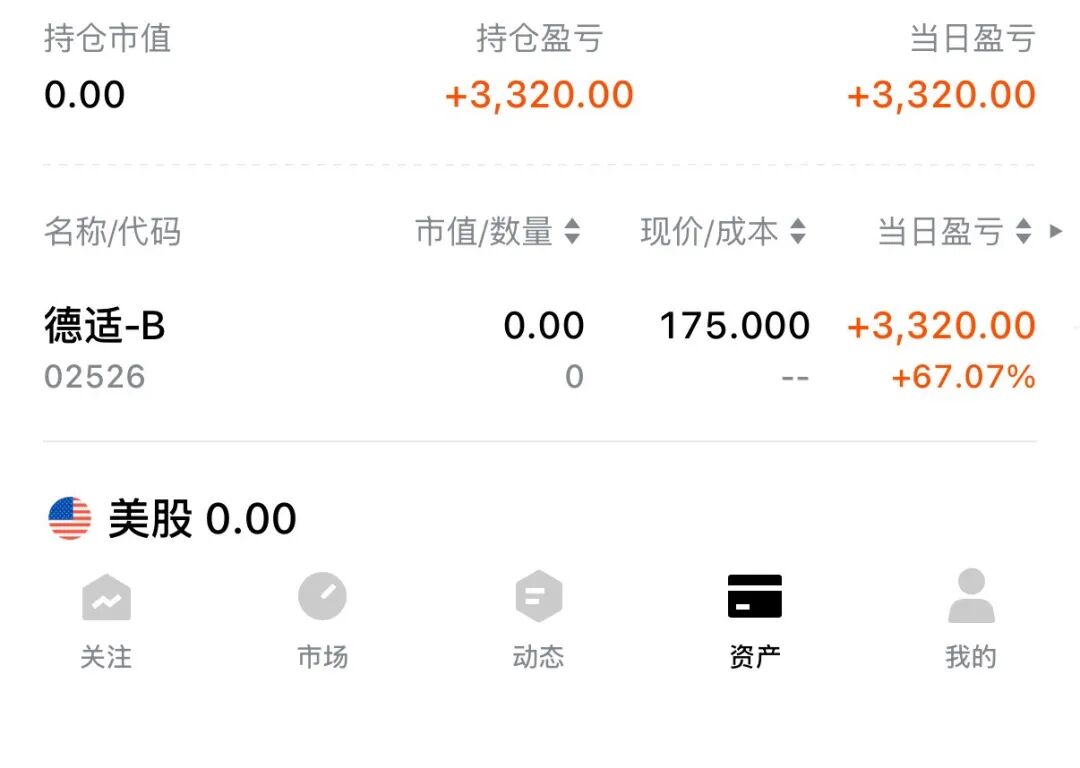 铜师傅最后一天看孖展没冲起来,放弃了,撤单的时候有一个户没撤掉,中了1手。