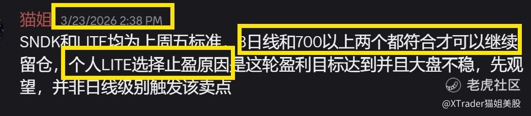 本周一清掉了这轮的热门 $LITE 当然事后看也能挑毛病,比如周二lite还涨了10%。交易没有完美的,符合自己的标准就好。同样重申了SNDK和LITE这些持仓标准,跌破就不要幻想,现在想想都挺后怕的,美股不像是以前的市场了,被人为破坏得逻辑和理由都缺失不少。