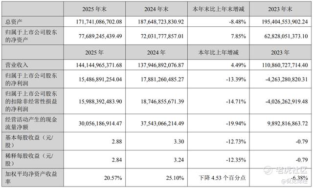3月27日晚,全国最大的生猪养殖企业牧原股份 $牧原股份(02714)$ 发布2025年财报,财报显示,2025年公司实现营收1441.45亿元,同比增长4.49%;实现归母净利润154.87亿元,同比下降13.39%;实现扣非净利润159.88亿元,同比下滑14.71%。