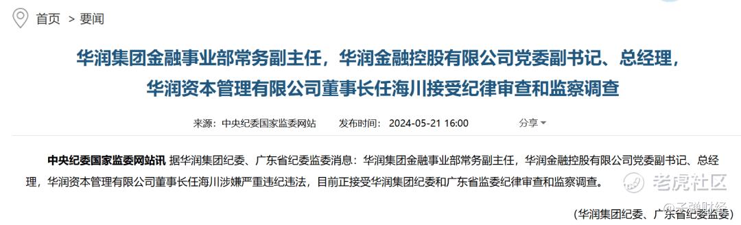 此前在2024年5月,中纪委官网发布消息,任海川涉嫌严重违纪违法,正接受华润集团纪委和广东省监委纪律审查和监察调查。