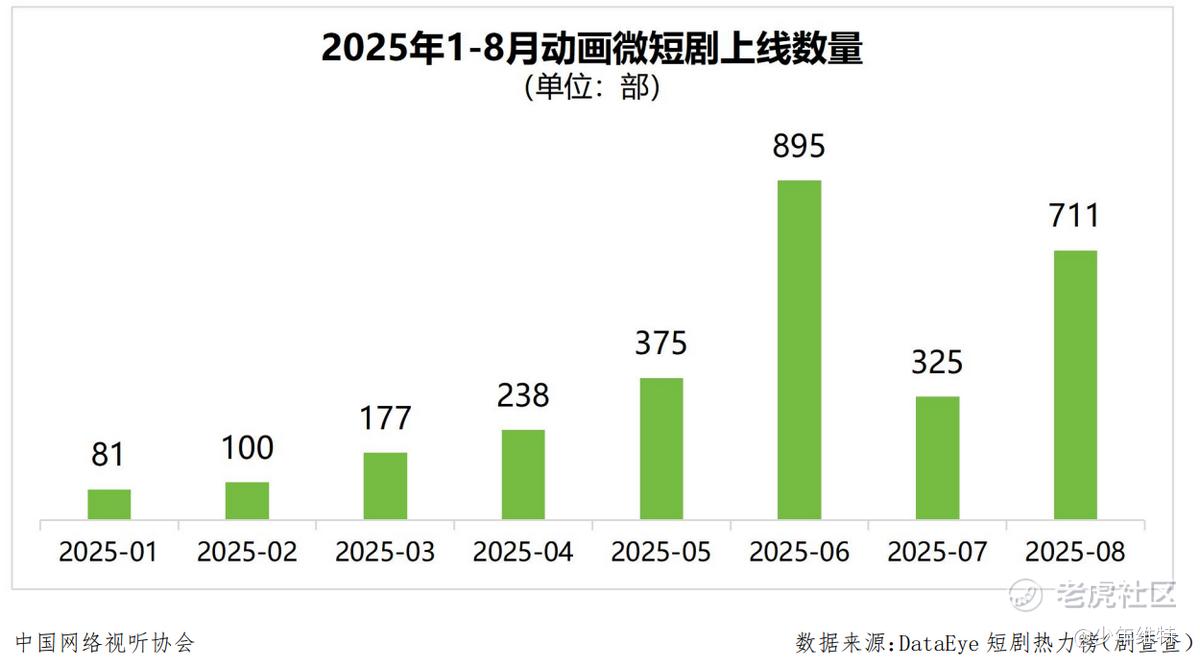 2025年中国微短剧与漫剧全年产值达到千亿,2026年保守估计将突破1200亿。其中2025年1-8月,各平台累计上线动画微短剧2902部,呈指数级增长。
