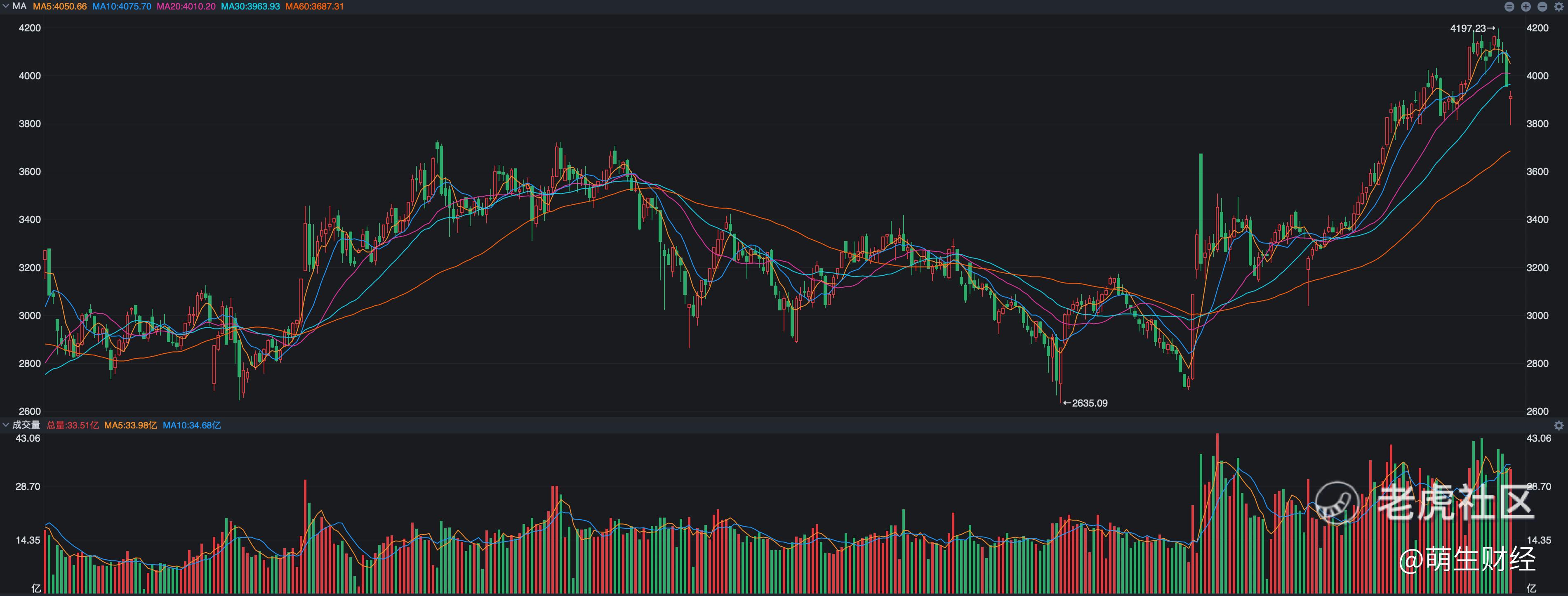 如此也就顺应了券商研究报告的观点,既然是雷阵雨式的调整,那么调整不仅仅是短期的,还对此前的多头趋势没有太大的伤害,尽管目前的日线上看起来空头氛围比较明显,如果你看看周线就不这么想了,毕竟周线下方还有60日线的支撑,估计到了本周60日线所在的位置就是3700点了,这种情形下市场在3900点到3800点整理几周,均线就上来了,即便是短期内出现失控的情况,那么60日线的3700点支撑也会比较明显。