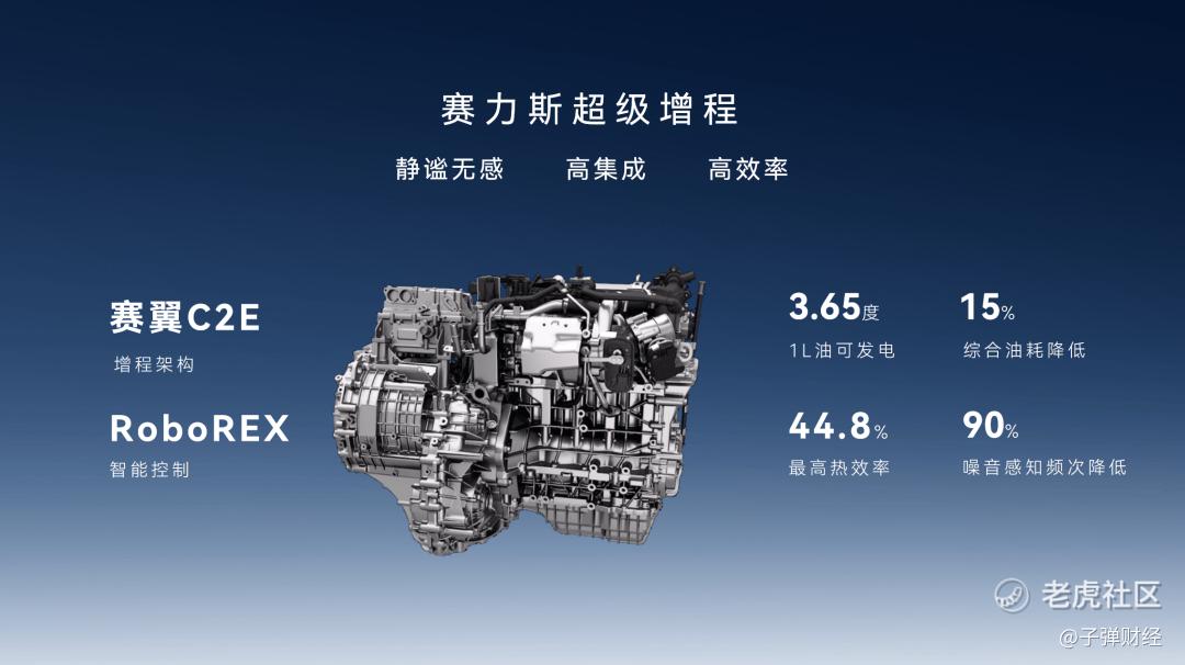 其全新一代赛力斯超级增程系统,具备静谧无感、高集成、高效率三大优势,最高热效率达44.8%,噪音感知频次降低90%,油电转化率3.65kWh/L,这意味着仅用1升油即可发电3.65度,处于行业量产增程器的领先水平。不仅在技术方面行业领先,赛力斯增程器业务的市占率高达37.5%,跃居中国市场第一。