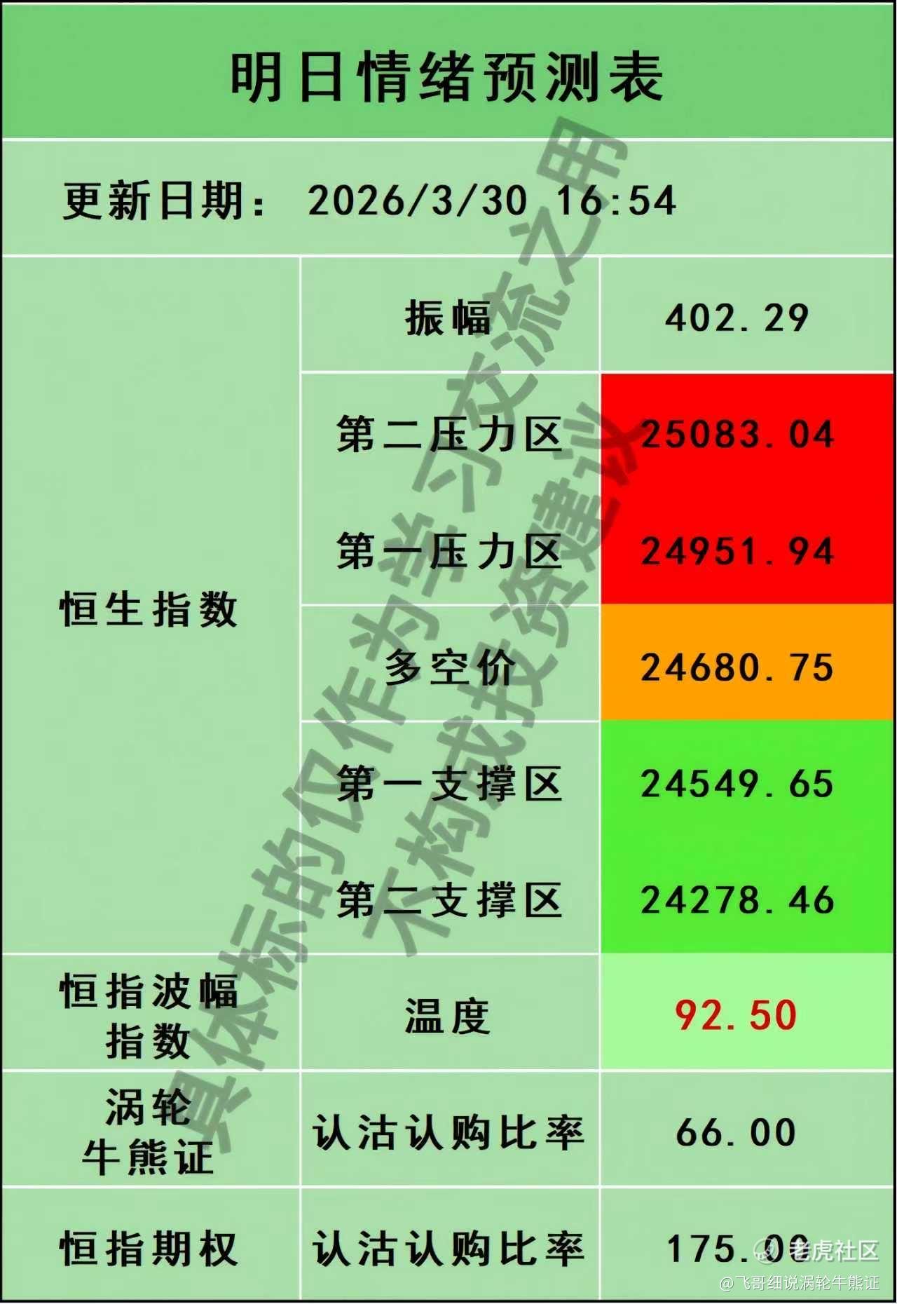 恒指波幅指数温度:92.50,比上周五的90.00还高,已经到了高位。这意味着明天的波动概率会非常大,追涨杀跌的风险极高,很容易两边打脸,操作一定要轻仓,别上头