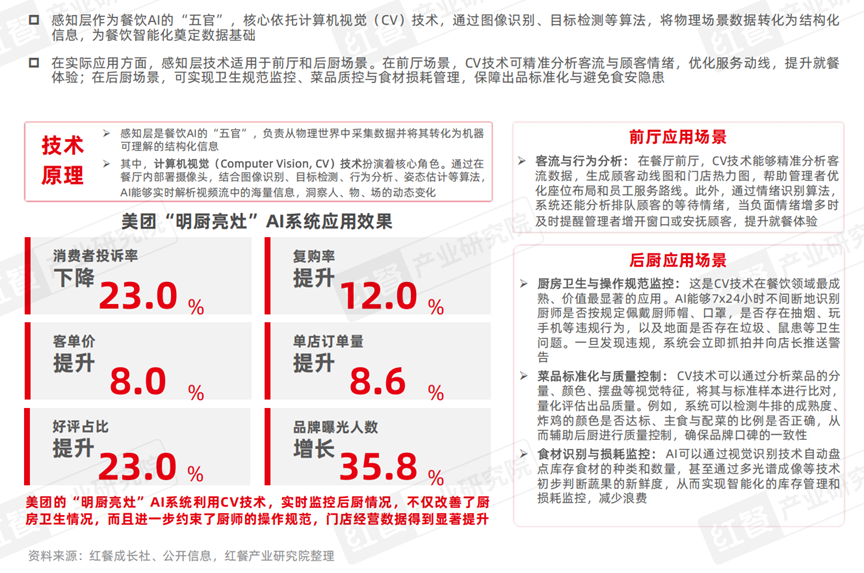 1.餐饮AI感知层以计算机视觉为核心技术,实现场景数据采集与智能监控