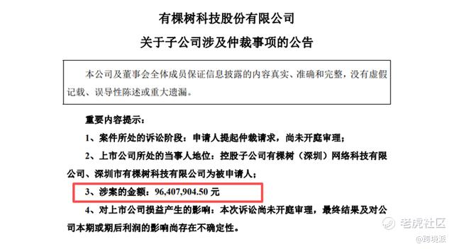 今年1月,有棵树尚未改名前曾发布一则公告,披露其两家控股子公司因物流合同纠纷被申请仲裁,涉案金额高达9640万,原告方“前海云途”正是纵腾集团旗下公司。