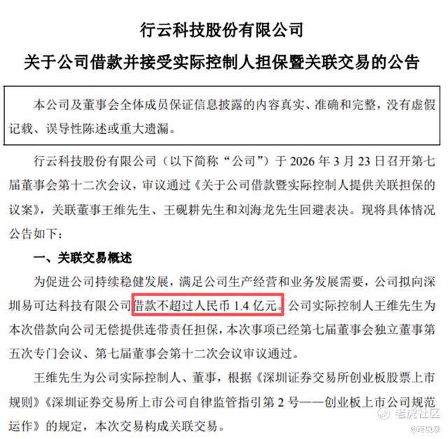 近日,行云科技发布公告,宣布拟向深圳易可达科技有限公司(以下简称“深圳易可达”)借款不超过人民币1.4亿元,用于满足公司生产经营和业务发展需要。
