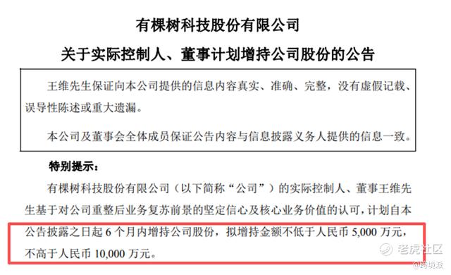 在有棵树完成证券简称变更,正式更名为“行云科技”的同一日,王维就宣布,计划在未来半年内增持公司股份,增持金额不低于5000万元、最高可达1亿元,理由是对公司重整后的发展前景有充足信心。