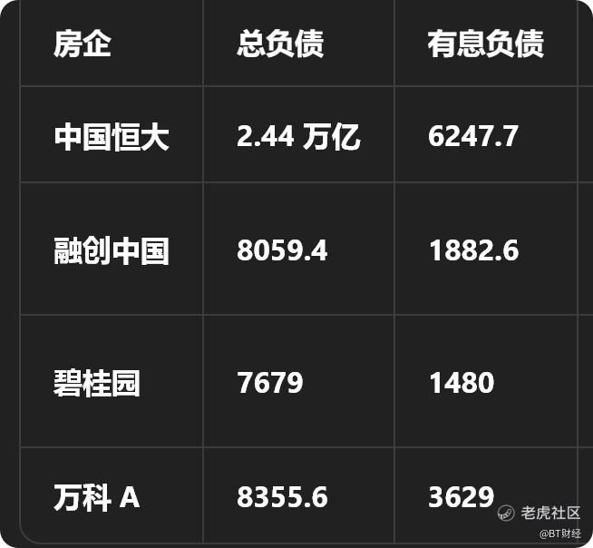 和其他头部房企一样,碧桂园的负债一样高企。此前长期雄踞房企前四的恒大、万科、碧桂园和融创中国,截至2025年年末总负债分别是2.44万亿元、8355.6亿元、7679亿元和8059.4亿元,碧桂园在四家房企巨头中负债最低,且有息负债只有1480亿元,其他三家的有息负债分别为恒大的6247.7亿元、万科的3629亿元和融创中国的1882.6亿元。碧桂园有息负债占总负债的比例只有19.3%,而恒大、万科和融创中国的占比分别是25.6%、43.4%和23.4%,碧桂园成为有息负债占比唯一一家低于20%的头部房企。