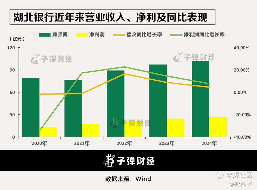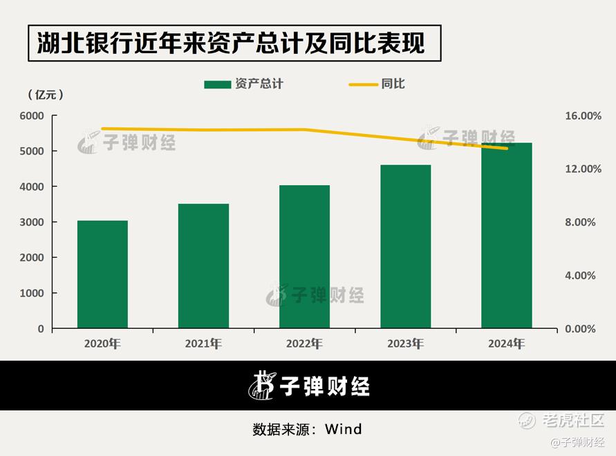 截至2025年末,湖北银行总资产达6214.56亿元,同比增长18.8%。Wind数据显示,自2020年起,湖北银行总资产一直保持两位数增长。
