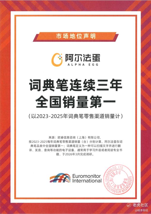 如今,词典笔已成为众多孩子的学习必备工具,而在这一赛道中,淘云科技旗下的阿尔法蛋词典笔始终表现亮眼。近日,权威调研机构欧睿咨询出具认证结果,阿尔法蛋词典笔拿下 2025 年全国词典笔销量第一的成绩。这是其继 2023 年、2024 年后,连续第三年登顶词典笔全国销量榜首,成为该品类当之无愧的领军者。