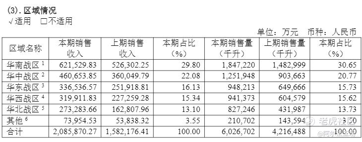 虽然东鹏已经将产品卖到32个国家和地区,但根据区域划分销售占比,2025年海外及其他渠道收入仅7.4亿元,在所有区域销售中占比3.55%。