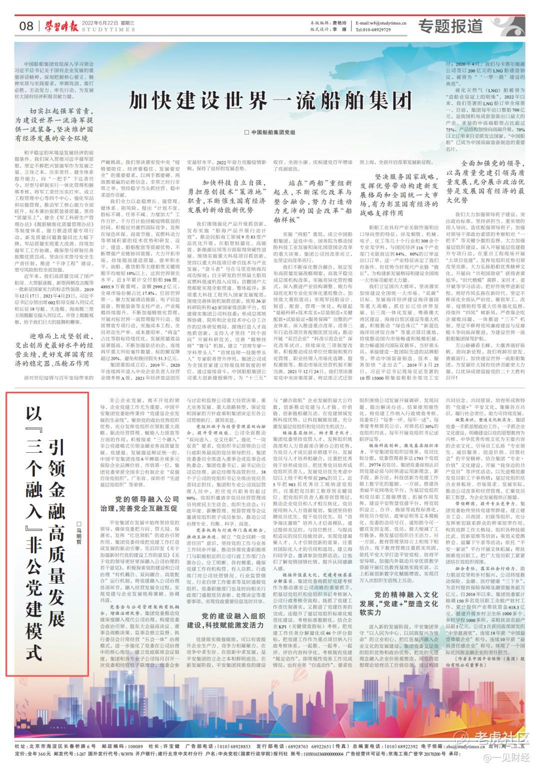 马明哲在文章中表示,非公企业发展,离不开党的领导,企业党建工作尤为重要。平安集团在发展中始终坚持党的领导,确保党委把方向、管大局、保落实,发挥“红色领航”的政治引领作用。