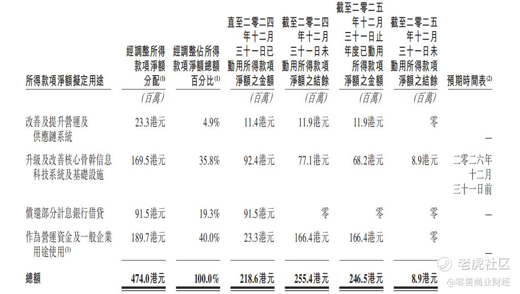 为缓解经营端的资金压力,百果园在2025年10月完成2.795亿股新H股的配售工作,所得款项净额约3.25亿港元。截至2025年末,该笔募集资金已使用2.97亿港元,资金主要投向日常业务贸易应付款项支付、银行贷款偿还两大方向。