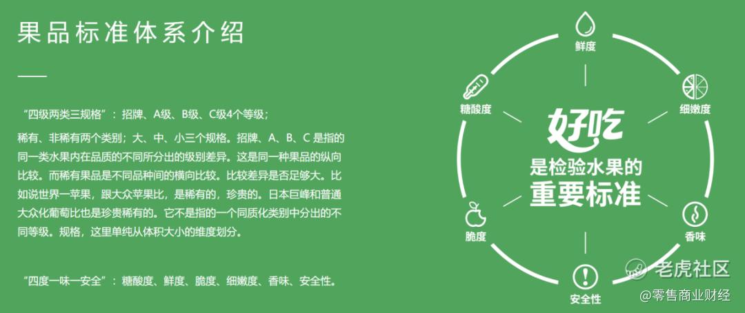 公司建立了“四度一味一安全”的果品分级标准,推出“不好吃三无退货”的终端服务政策,通过标准化的品质与服务承诺,建立起消费者的品牌信任,也获得了超出行业平均水平的品牌溢价,该体系也是吸引加盟商加入品牌体系的核心因素。