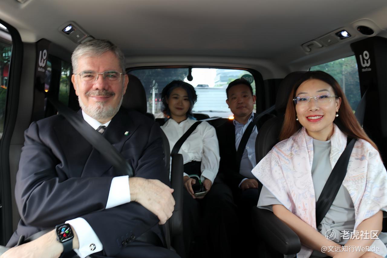 在真实的城市开放道路上,安博思大使切身感受了文远知行L4级自动驾驶技术的安全可靠。作为公司旗舰车型,新一代量产Robotaxi GXR在安全冗余和整车稳定性方面进一步升级,能够从容应对城市路况。此外,GXR全球首创隐藏式B柱设计,最多满足五名乘客的空间自由,让整个乘坐过程舒适从容。安博思大使对此次行程给予了高度肯定,认为“非常舒适、安全”,并与公司探讨了在意大利进行技术落地的应用场景和发展规划。