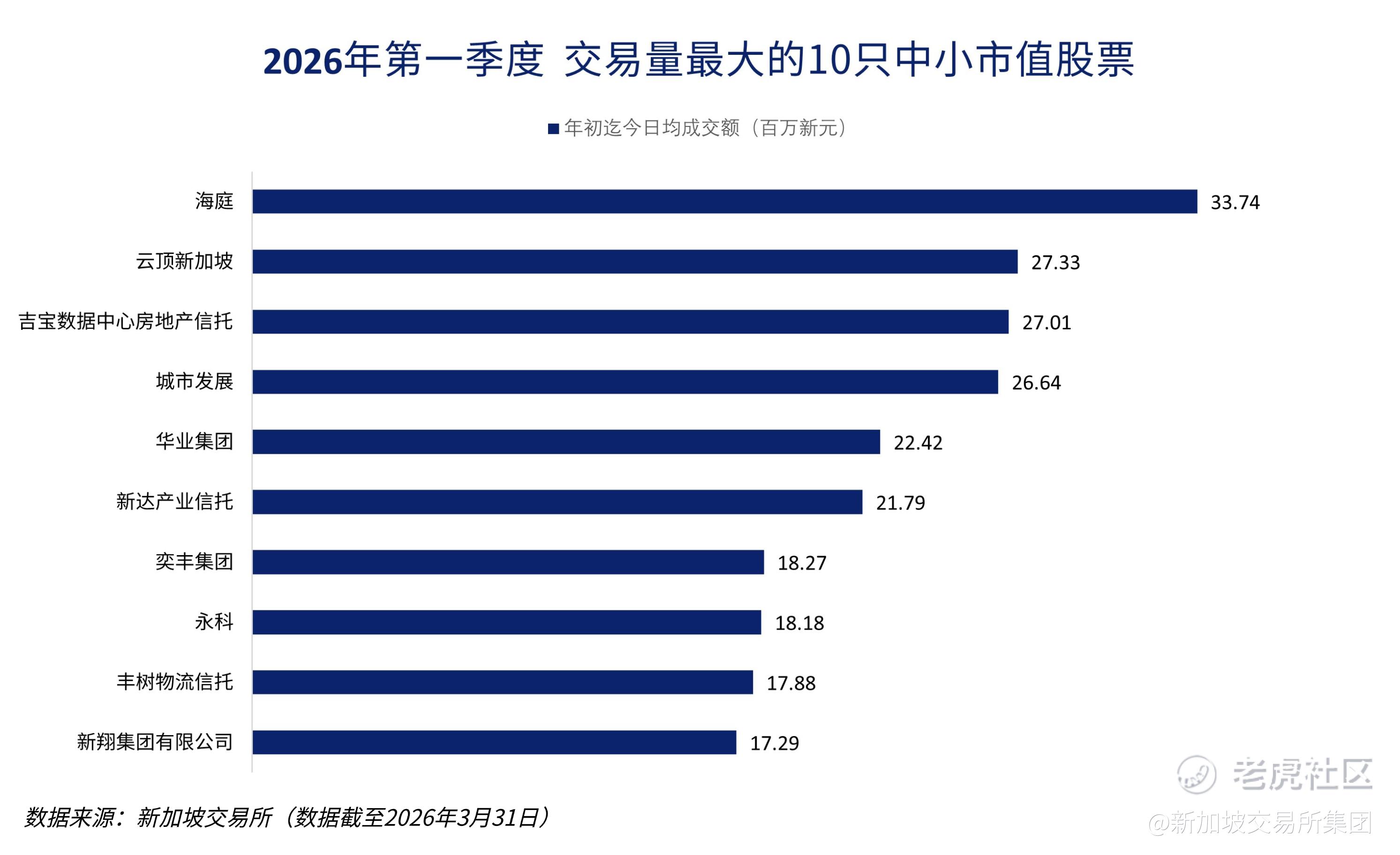 不计房地产投资信托基金,中小盘股(市值1亿至100亿新元)板块在2026年第一季度吸引了近4.7亿新元的机构资金净流入,流动性也显著改善。合共日均成交额提升至近6.7亿新元,表明市场参与度在扩大,且大盘股以外的股票价格发现功能得到了改善。