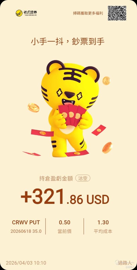 $CoreWeave, Inc.(CRWV)$ 今年都算系咁架啦到而家都仲升紧。我亦部署了多张中短线既看淡期权。最近系4月17号既35同37.5。远既系6月18既35。[胜利]