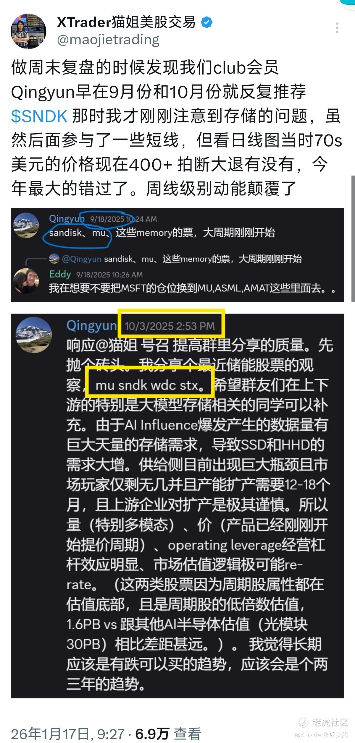 $SNDK 周四气势如虹,查了下最早是1月16日400s分享的,目前接近700,当时分享重点是周线级别动能刚颠覆,这意味着能走挺远的~~观点不变。