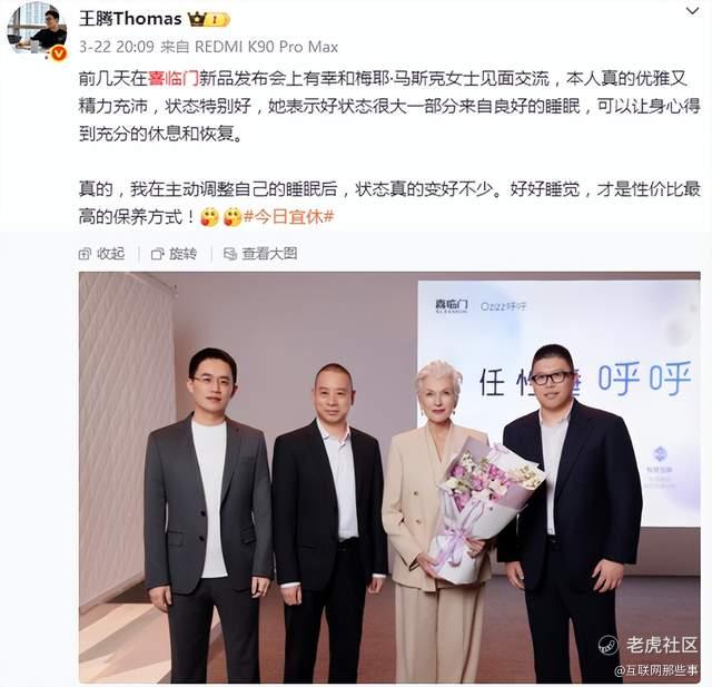 并且,据笔者观察 ,在今年3月22日,王腾还受邀参加了喜临门的新品发布会,期间还与喜临门高层、梅耶·马斯克(伊隆·马斯克母亲)等开心合影,从侧面反映了喜临门高层的人脉资源颇丰。