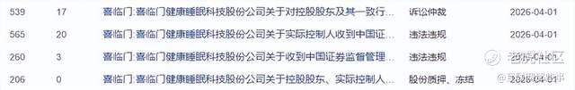4月1日晚间,喜临门罕见公告披露四连发,涉及诉讼仲裁、违法违规、股份质押和冻结,不少投资者度过了一个“惊魂夜”,具体来看公告内容: