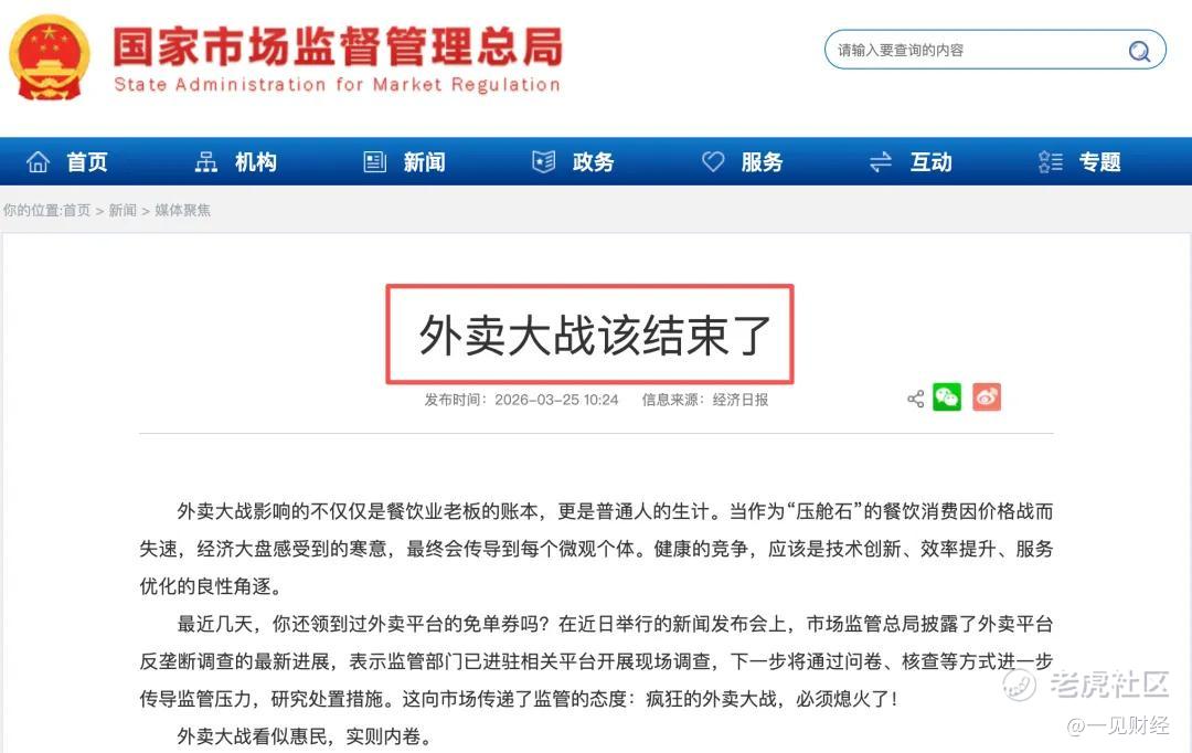 显然,监管层已不再将外卖大战视为单纯的企业商业行为,而是将其定性为影响国家经济大盘、干扰宏观调控的失序行为,问题的性质已经发生了重大变化。