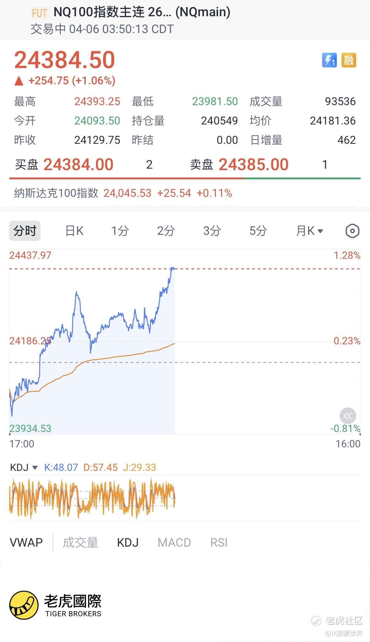 需要注意的是,当前指数已经逼近关键压力区(24430–24450),短线存在一定分歧。如果能够有效突破并站稳该区域,则意味着市场对风险解除的定价更加充分,纳指有望打开新一轮上涨空间;反之,如果冲高受阻,则仍可能进入震荡消化阶段。