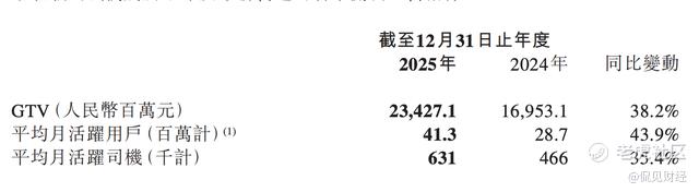 财报显示,2025年曹操出行平均月活跃用户数达4130万,同比提升43.9%;平均月活跃司机数达63.1万,同比提升35.4%。