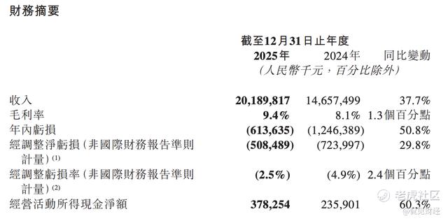 3月27日,港股最大的出行平台之一曹操出行 $曹操出行(02643)$ 发布了上市以来的首份年报。财报显示,2025年,曹操出行实现营收201.9亿元人民币,同比增长37.7%;归母净亏损6.35亿元,年内亏损6.14亿元,同比扩大50.8%;经调整净亏损额5.08亿元,同比扩大29.8%;毛利率为9.4%,上年同期为8.1%。