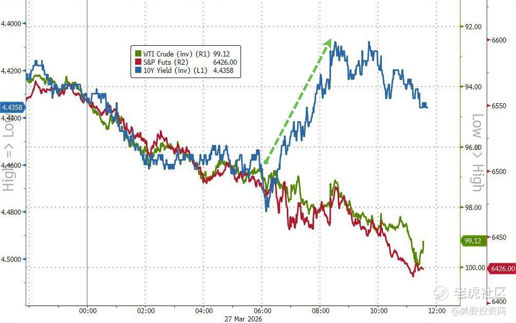 在这个阶段,跨资产市场出现了一个极其关键且反常的信号:10年期美债收益率在日内短暂冲高后,迅速掉头转跌。