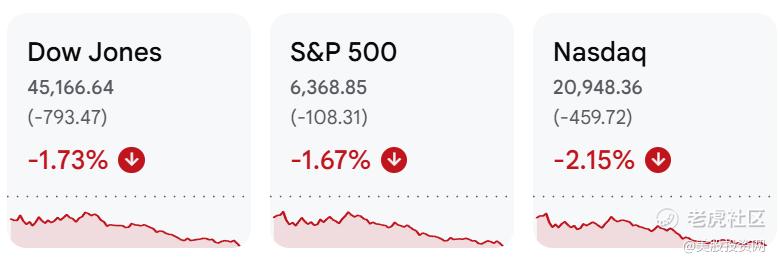 截至收盘,道指跌幅1.72%,纳指大跌2.15%,标普500下挫1.67%。道指和纳指均较历史高点回撤超10%,正式宣告进入技术性回调区间。