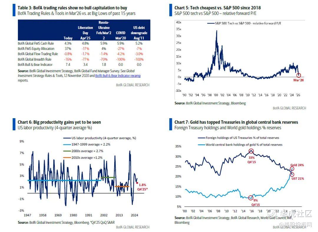 资金在往哪里逃?避险与大调仓=现金流出创10周之最(350亿美元)+美股流出创13周之最(236亿美元)。资金疯狂涌入安全资产=短期债券流入133亿美元(史上第三大)+美国国债持续流入。这意味着:Q1市场的“共识交易”正在经历剧痛(Pain trade)>现实是能源跑赢了科技+现金跑赢了AI债券+新兴市场跑赢了美股。过去几个月基于“流动性见顶+AI资本开支繁荣”的乐观定价正在被修正。