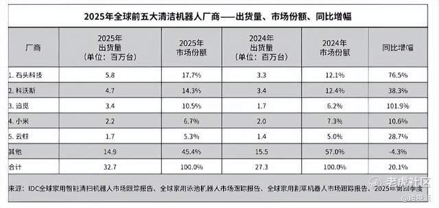 2025年全球清洁机器人排名 图源:IDC咨询