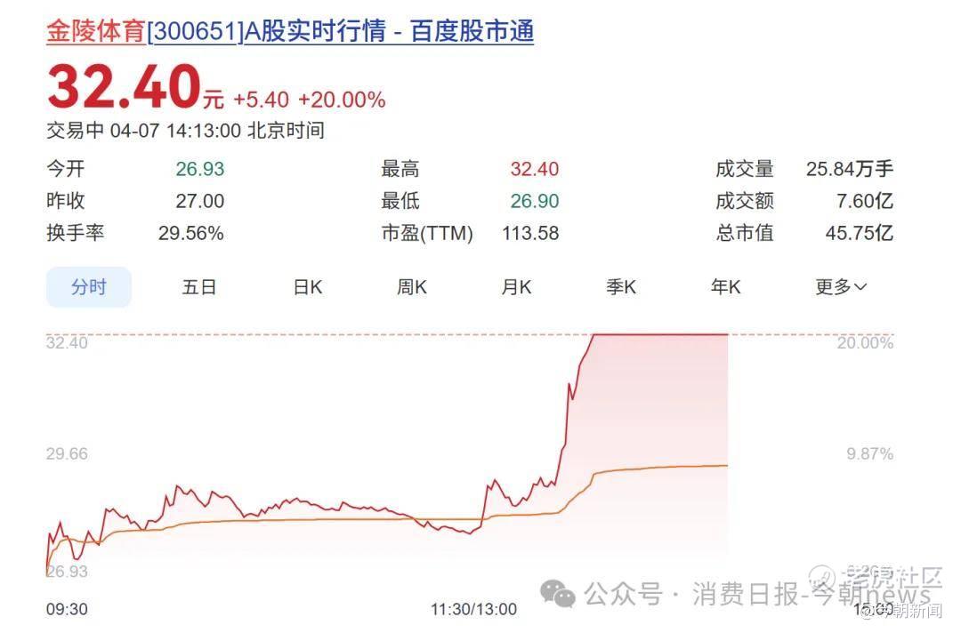 消费日报-今朝新闻讯,4月7日午后,A股体育概念再度拉升,金陵体育涨超15%,中体产业回封涨停,共创草坪、双象股份、舒华体育、力盛体育等跟涨。
