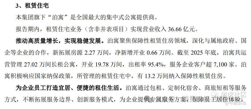 2025年全年,泊寓实现营业收入36.66亿元,企业客户占比达到22.6%,年内新增拓展了中国邮储、蚂蚁金服、浪潮数字、一汽大众等多家头部企业客户,核心运营指标持续保持行业领先。