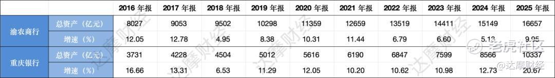 从二者规模扩张的脚步可以窥见不同的发展路径。本质上,渝农商行依托县域网点覆盖与涉农业务根基,走稳扎稳打、存量深耕路线;重庆银行则依托资源整合与重大项目投放能力,走弯道超车、增量突破路线,两种模式在2025年形成鲜明反差。