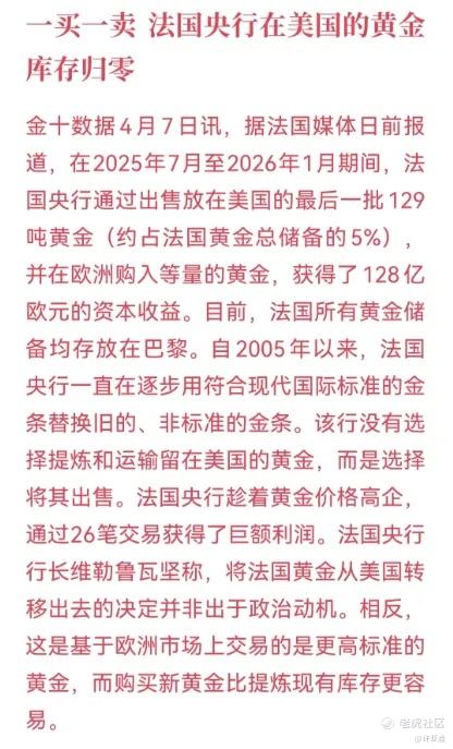 这几年,在德国央行屡次想要运回存放在美国的金砖受阻之后,咱一起看看法兰西央行的骚操作吧: