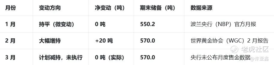 2026年初,波兰央行曾宣布将继续增持150吨黄金,储备目标是囤到700吨(真增持到这个数目就可以进全球前10)。