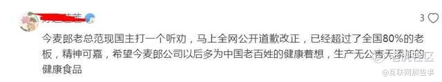 范现国掷地有声的表态,一定程度上为品牌博得了好感度,比如有网友认为“今麦郎老总范现国主打一个听劝,马上全网公开道歉改下”,“这么坚定认错改正的企业,应该给一个机会”,“……绝不是恶意欺骗 ,现在董事长站出来,做法加分……”