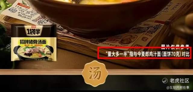 据凤凰网报道,今麦郎旗下“1 袋半”方便面至少存在两种规格,包装上面饼重量分别标注为110克与120克,在其中一款110克装产品的详情页中,有一行小字备注:“量大多一半指与今麦郎鸡汁面(面饼70克)对比”。但在今麦郎官方旗舰店搜索不到这款作为参照对象的鸡汁面产品。