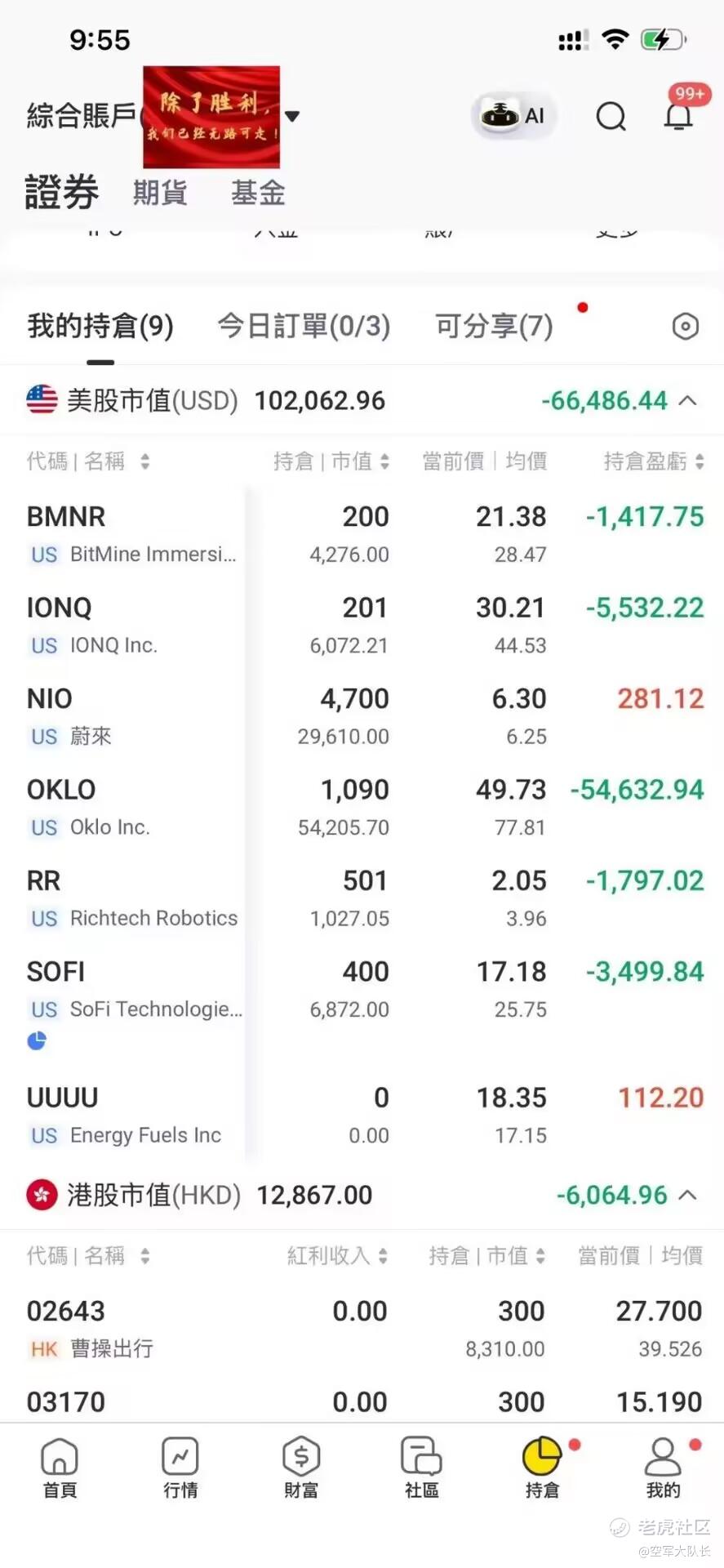 因为理论跟实践操作还是不一样的,模拟盘我是做得很好,但是实盘能不能做好呢,这次是做好了,因为已经跑了,但是这个实盘账户里面还有OKLO,IONQ,RR,BMNR,SOFI要全部解套出来,这也是有难度的。