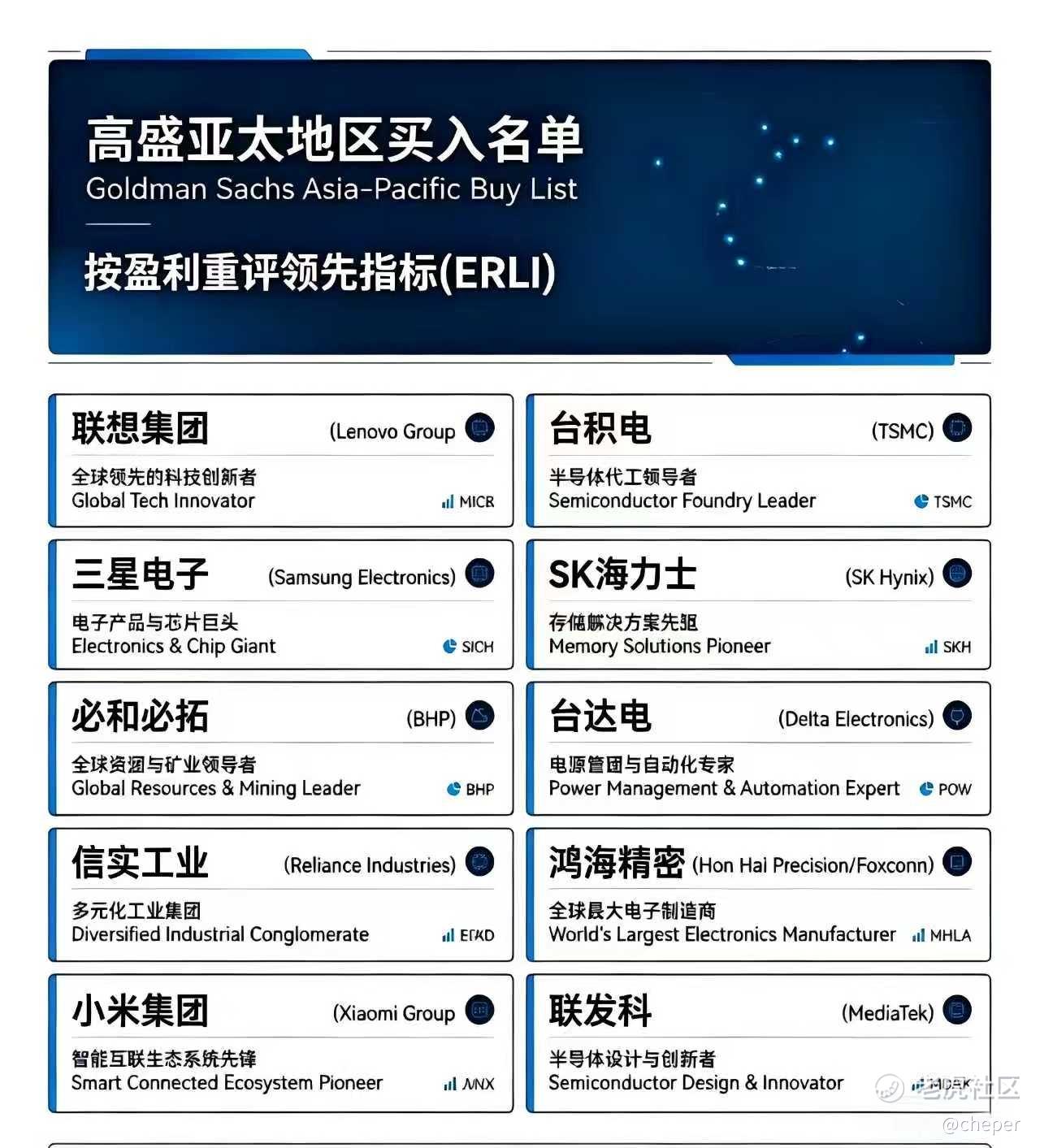 $联想集团(00992)$ 今日联想集团(00992.HK)表现强势,盘中涨幅近5%触及10.18港元,成交额达8.9亿。上涨逻辑清晰:高盛基于“盈利重评领先指标(ERLI)”将其列入4月亚太及港股核心买入名单。联想与台积电、小米、中石油等名企同列,反映了权威机构对其盈利反转潜力的认可,有力支撑了股价的强劲走势