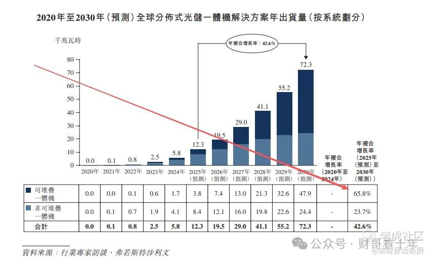 公司核心布局的可堆叠分布式光储一体机赛道,未来 5 年复合增速超 65%,是新能源领域增速最快的细分赛道之一,受益于全球能源转型、户储需求爆发、AI 算力储能需求提升三大核心红利,行业长期增长逻辑清晰