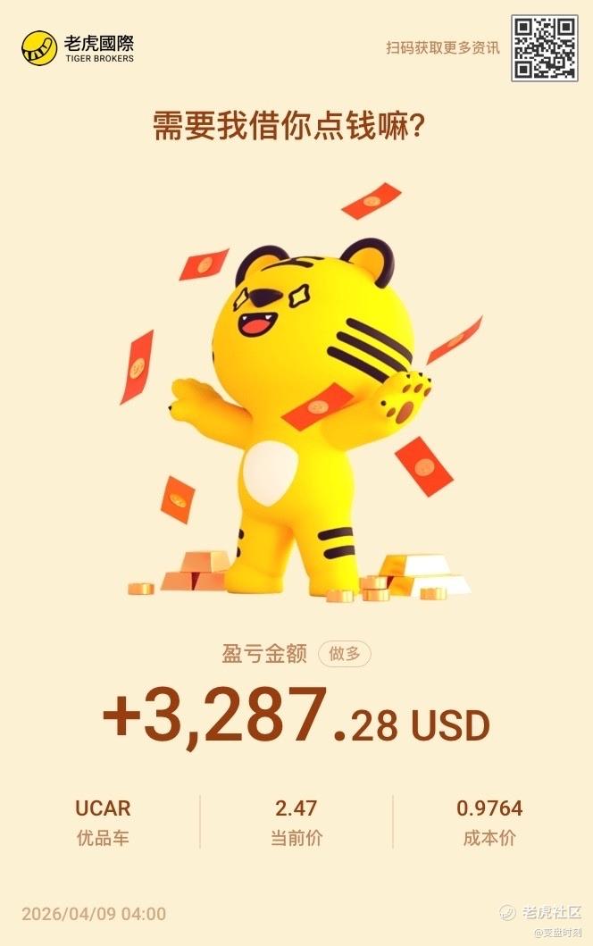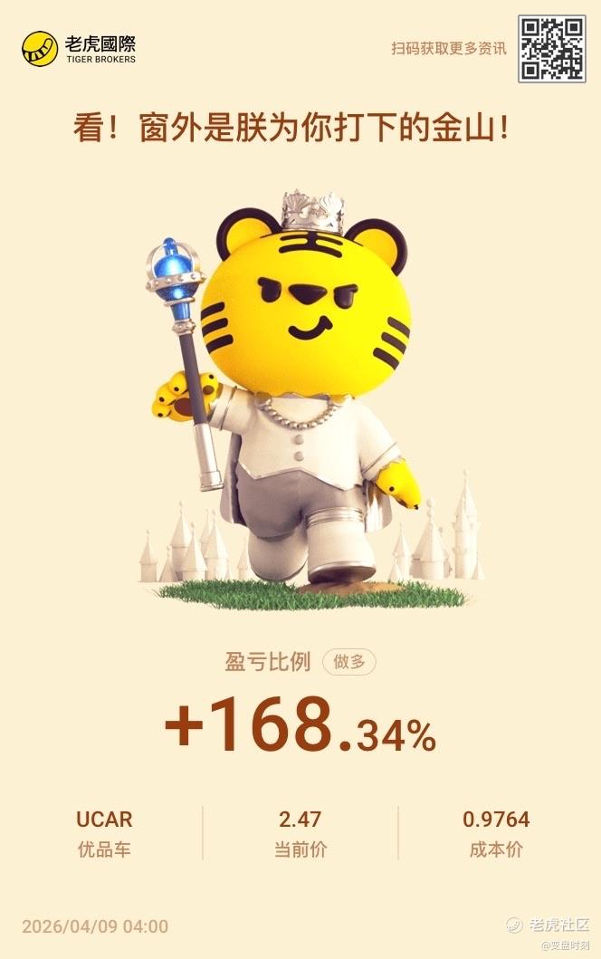 $优品车(UCAR)$ 这么劲爆的票,怎么能少得了我呢~恭喜各位跟上的虎友~这种票可不是随便哪个券商久给买的哟~只有老虎能买~感谢~怒赚168%~