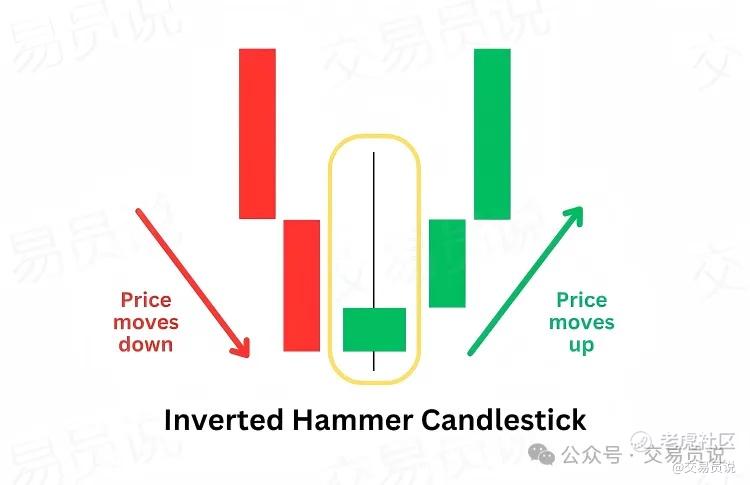 倒锤子线(Inverted Hammer)与锤子线类似,但结构相反。它同样出现在下跌趋势底部,实体较小,位于K线底部附近;上影线较长,至少为实体的两倍;下影线很短或几乎不存在。
