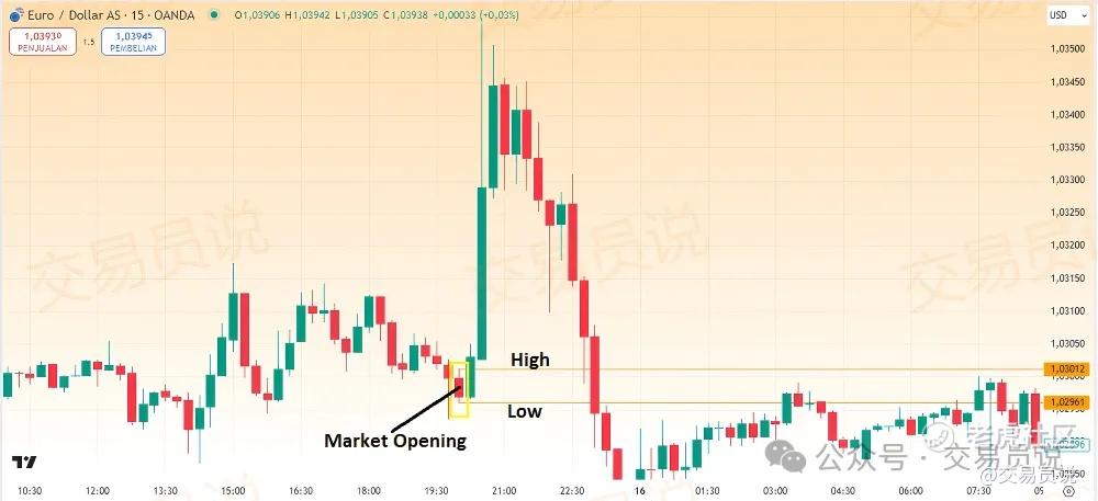 另一方面,止损的设置取决于前15分钟K线的形态。如果前15分钟K线实体较小或中等、且影线较长,则止损应设置在该K线的最高点或最低点(取决于交易方向)。
