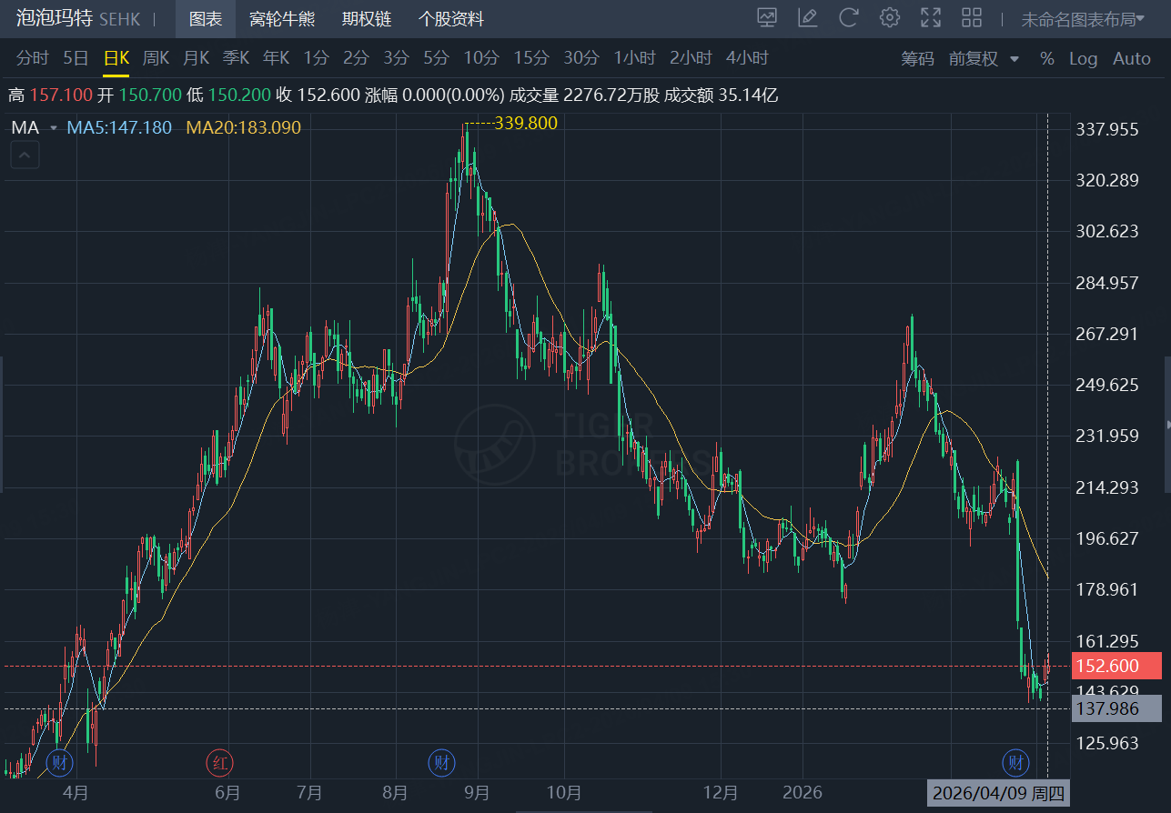 客观来讲,确实随着高增速预期的下降, $泡泡玛特(09992)$ 的股价+估值正在发生比较大的调整,目前已经回落到了前低附近(130-150区间),昨天的大反弹没有办法说趋势改变了。到底是不是“好价格”,要看后面市场是否相信“目前的增速放缓,是公司主动运营调整带来的暂时现象,而不是热度见顶后的周期拐点”。(当然就算真的在这个价位段总建仓了,也是一年以来的最低价了~[暗中观察])